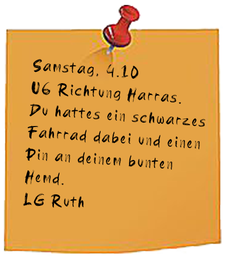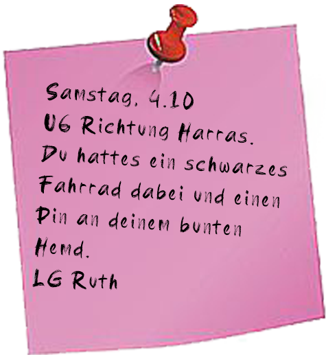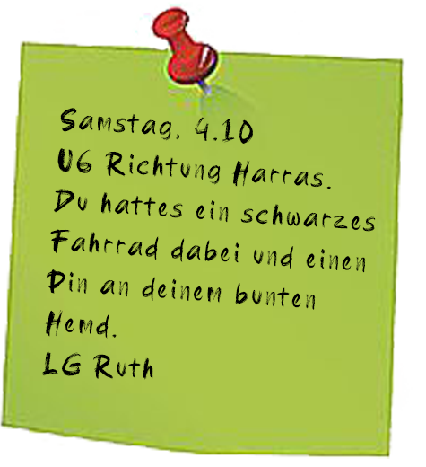 Du hast den Single Dot entdeckt, gesehen und es gab einfach keine Gelegenheit zu reagieren. Schreib uns und wir veröffentlichen deinen Text auf einem virtuellen post it, ohne deine Kontaktdaten. Mögliche Antworten schicken wir dir zu. Für später planen wir diese im “pairing-Radio“ mit Call-In zu veröffentlichen.
